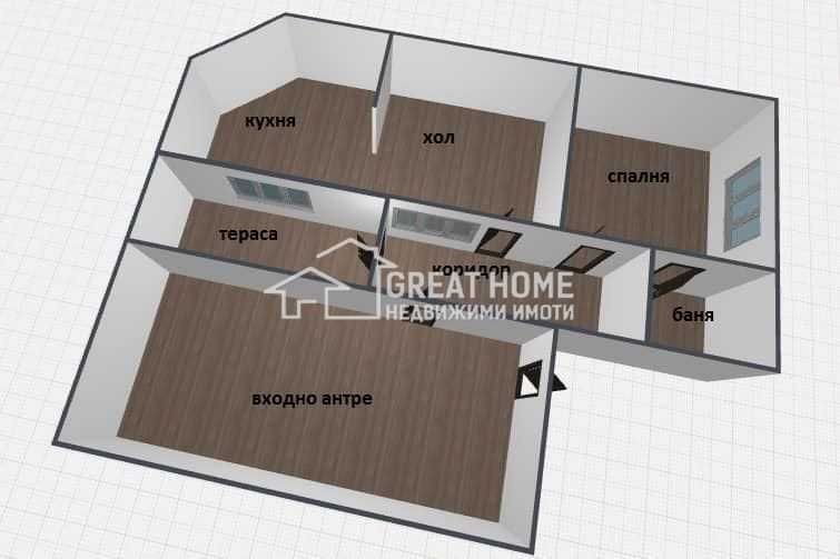 Пазар ! Етаж от къща ! Тухла ! Агенция за недвижими имоти GreatHome представя на вашето внимание тухлен етаж от къща с отделен вход и парко място в района на Пазара. Етажът се състои от спалня с баня, просторен дневен тракт, голяма кухня, коридор, има и голяматераса която е над просторно входно антре, а в мазето, което е на сутерен има помещения, котелно и друга стая в която се е живяло. Къщата е на изключително комуникативно място с изолация, сменена дограма и безброй опции да стане невероятно местенце за живеене и инвестиция в имот с цел отдаване под наем. Цена : 200 000 Евро код на оферта - 208 За повече яснота прилагаме схема на разпределение, а за повече информация моля, позвънете на 08****** ********** или в офиса на агенция за недвиживми имоти GreatHome. За вашия страхотен дом ! Офис : Георги Бенковски 2