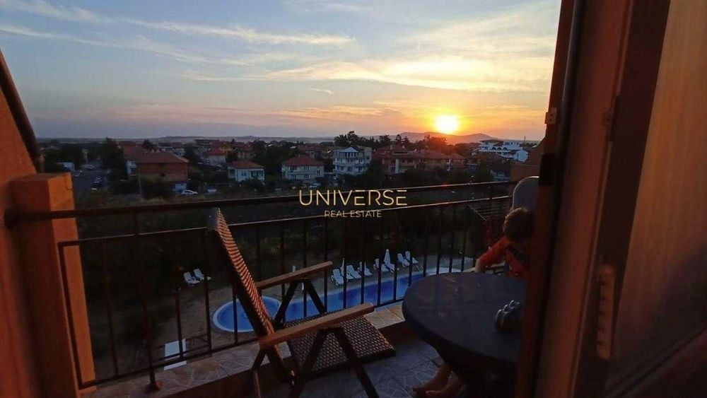 В малкото, уютно градче Ахелой, разположено на 22 км от Бургас (по права линия) и на 30 км по шосе, се продава уютен апартамент на пети етаж с две страни в комплекс (една сграда). Комплексът е въведен в експлоатация през 2009 г. Акт 16, електричество. Малката, добре поддържана градинарска територия предлага великолепна гледка към залеза. Има басейн, мини барбекю зона и детска площадка. Таксата за поддръжка е 550 евро годишно. Разстоянието до морето е 700 метра. Комплексът е близо до жилищен район Ахелой, удобно разположен за минимаркети и градски транспорт. Ахелой разполага с детска градина, училище и библиотека с детски занимания. Апартаментът е 66 квадратни метра (включително общи части), обзаведен и оборудван. Такса поддръжка: 550 евро годишно, плаща се до 2026 г. #4635 В маленьком уютном городке Ахелой, который расположен в 22 км от Бургаса ( по прямой ) и в 30 км по автодорогам, в комплексе- 1 здание ) продается уютный апартамент на пятом этаже, на две стороны. Комплекс сдан в эксплуатацию в 2009 году. Акт 16, бытовой ток. Территория не большая, ухоженная садовником, с великолепными видами на закат солнца, есть бассейн, мини зона барбекю, детская площадка. Такса поддержки 550 евро в год. До моря 700 метров. Комплекс находится приближенно к жилому массиву Ахелоя, удобно ходить в минимаркеты, близко до остановки общественного транспорта. В Ахелое есть детский сад, школа, библиотека с занятиями для детей. Апартамент площадью 66 кВ метров (включая общие части), в жилом состоянии меблирован и укомплектован техникой. Такса поддержки 550 евро в год, оплачено до 2026г. #4635