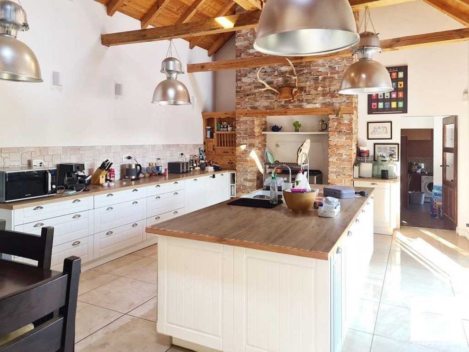 Просторна реновирана къща с 3 спални и басейн в с. Стефан Стамболово, близо до Велико Търново Предлагаме за продажба напълно обзаведен и готов за нанасяне имот, разположен в добре уреденото село Стефан Стамболово, само на 27 км от историческия град Велико Търново и на 10 км от град Полски Тръмбеш. Селото разполага с всички необходими удобства - магазини, заведения, редовен автобусен транспорт и комуникации, което го прави подходящо както за постоянно живеене, така и за ваканционен имот. Къщата се простира върху 190 кв. м. жилищна площ разпределена между два етажа. На първия етаж са разположени просторна дневна с камина, оборудвана кухня с трапезария, уютна спалня, котелно помещение, баня с тоалетна, втора кухня и още една по-малка дневна. Вътрешно стълбище отвежда до втория етаж, където има още две комфортни и светли спални, баня с тоалетна и тераса. Интериорът разполага с подова настилка теракот, ламинат и дюшеме, дървена дограма и врати, стени с латексно покритие. Къщата разполага с локално отопление на дърва и въглища, както и климатици. Дворът е равен, с площ от 1600 кв. м, ограден с масивна каменна ограда, осигуряваща спокойствие и уединение. В него има плувен басейн и солидна каменна постройка с навес, която може да се използва за склад, работилница или да се обособи допълнително жилищно пространство. Имотът е снабден с вода, електричество и е лесно достъпен през цялата година. Този уютен дом се продава напълно обзаведен и е отлична възможност за всеки, който търси спокоен живот на село, съчетан с удобства и готовност за незабавно ползване.