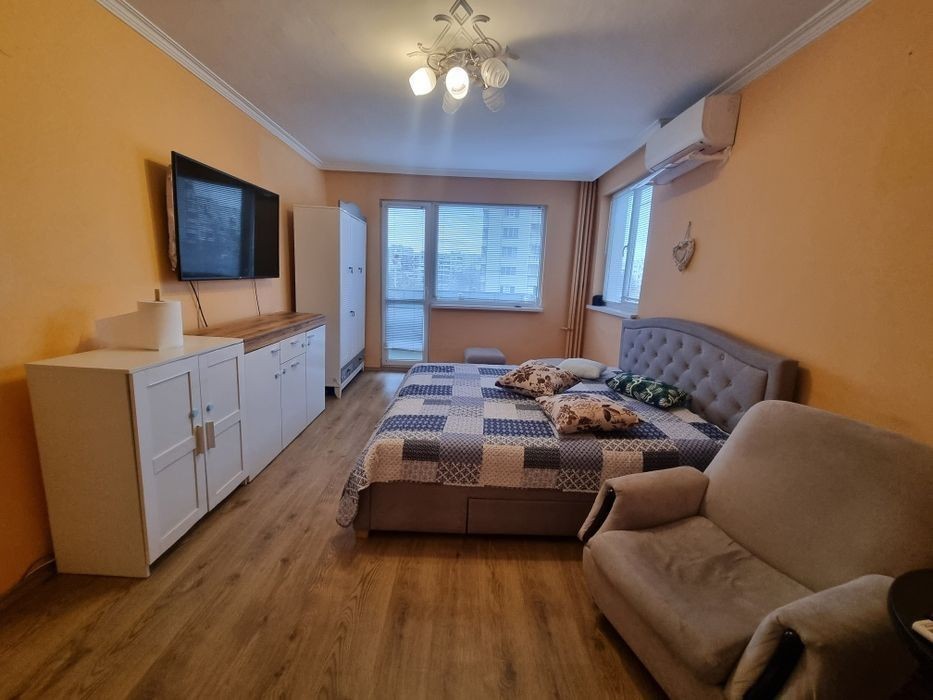 Тристаен апартамент под наем - кв. Разсадника, гр. София (Широк център) Местоположение: Предлагам под наем тристаен апартамент с чиста площ от 70 кв. м, намиращ се в кв. Разсадника, на 4-ти етаж от 13 в санирана ЕПК сграда без ТЕЦ. Жилището е на отлична локация - в близост до метростанция, трамвайни и автобусни линии, пазара на Красна поляна, детски градини, училища, голям парк и множество магазини от големите вериги и малки търговски обекти. Описание на имота: Апартаментът се състои от: • Входно антре • Хол • Две самостоятелни спални • кухненски бокс • Баня с тоалетна • Две тераси - пред всяка от стаите (едната е открита) • Мазе Изложение: Североизток, като едната стая има частично южно изложение. Всички помещения гледат към тиха вътрешна уличка с голям паркинг. Обзавеждане и оборудване: Апартаментът е напълно обзаведен и оборудван с всичко необходимо за комфортно живеене: • Смарт телевизор - 65 инчов • Пералня със сушилня, хладилник с фризер, готварска печка, миялна, микровълнова, кафемашина, кана за вода • Бойлер 120 л. • 2 климатика - Daikin и Toshiba • 2 спални с легла (180/200) • Холна гарнитура с фотьойли и 4 табуретки • 4 гардероба, 2 скрина, ТВ шкаф, 2 нощни шкафчета, 2 скрина • Разтегателна трапезна маса, 2 холни маси, кресла При желание - възможност за премахване или добавяне на мебели/телевизор по договорка. Сграда и общи части: • ЕПК строителство • Санирана фасада • Без ТЕЦ • Два асансьора - пътнически и товарен • Входът е добре поддържан, с контролиран достъп и чип система • Свободно паркиране пред и зад блока Условия за наемане: • Дългосрочен наем • Само за частни лица • Непушачи и без домашни любимци • Огледи - само при сериозен интерес и след предварителна уговорка • Брокери - само при условие, че не се заплаща комисионна от наемодателя и има подходящи наематели За контакт и информация: Анелия, телефон: 08******02