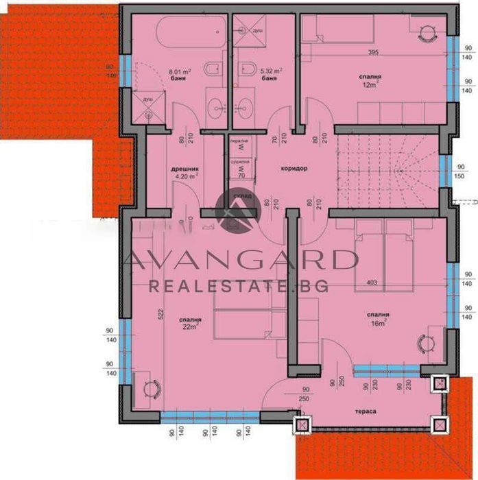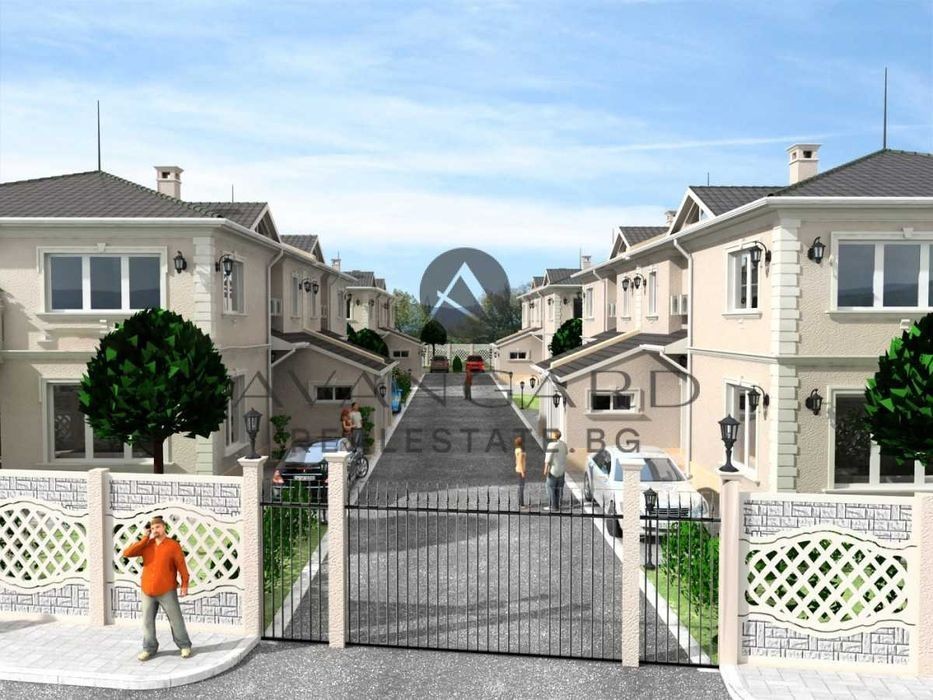 оф. 24369 ДВУЕТАЖНА КЪЩА С АКТ 16 В ЛУКСОЗЕН ЗАТВОРЕН КОМПЛЕКС В КОМАТЕВО ! Предлагаме Ви да закупите двуетажна къща със самостоятелен парцел, с площ от 330 кв. м и РЗП от 222кв. м. На първо ниво на къщата са разположени обширно антре, гараж с топла връзка, просторен хол с място за камина, а чрез панорамни френски прозорци и плъзгащи системи, дворът става естествено продължение на дневната, голяма кухня и трапезария с излаз на покрита веранда, гостна спалня със самостоятелна баня и тоалетна, втори санитарен възел. На второто ниво се разгръщат спалните помещения - родителска спалня с вграден голям дрешник и директен преход към самостоятелен санитарен възел, 2 отделни детски стаи със собствена баня и тоалетна. Във вече облагородените дворове, прилежащи към къщите, има зона за релакс, барбекю, затревени площи, както и допълнителни 2 паркоместа. Възможност за прекарване на ГАЗИФИКАЦИЯ! Къщата се предлага на шпакловка и замазка, ВиК на тапа, ел. инсталация до ключ, което Ви дава възможност да я обзаведете по Ваш собствен вкус. Чистият въздух, разкриващата се панорамна гледка, озеленените площи и близостта до природата я правят чудесен избор за вас и вашето голямо семейство! Авангард Риъл Естейт предлага Висока сигурност при покупка на имот и цялостно съдействие до финализиране на сделката пред нотариус.