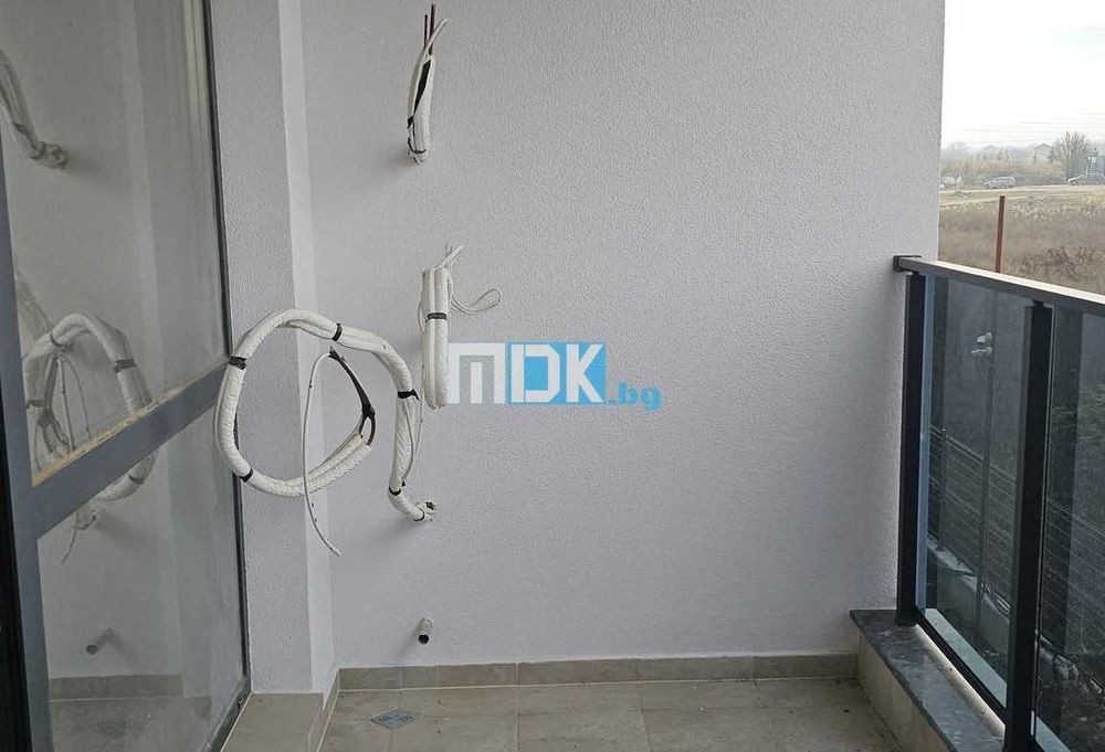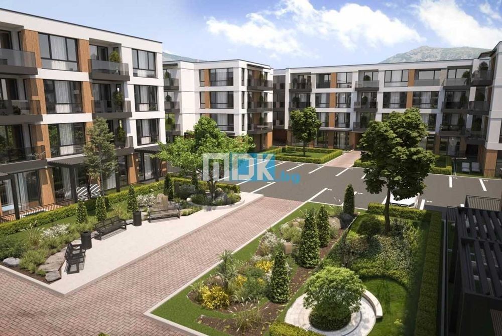 2-стаен апартамент с кратки срокове на издаване (лято 2026 г. ), в нискоетажна сграда, част от малък комплекс, с голям собствен двор и малка плътност на застрояване. Имотът включва няколко декара облагороден, собствен двор, с места за отдих, много зеленина и детска площадка. На разположение на живеещите е подсигурен хранителен магазин и кафе-бар в рамките на имота. Комплексът е в близост, но не на самата главна улица в квартала, даващ гаранции за спокоен живот на своите обитатели. Широка асфалтирана улица свързва комплекса с главната пътна артерия. Автобусни спирки и други търговски обекти са на пешеходно разстояние. Апартаментът се състои от хол с кухненски бокс, една голяма спалня, баня с тоалетна, тераса и просторно антре с място за гардеробна. Издава се на шпакловка и замазка с луксозно довършени тераси, фасади и общи части. В съседство може да бъде закупен подобен апартамент в начален етап на строителство с дълъг срок на изплащане (на лизинг) ! Към имота може да бъде закупен гараж с отделна цена.